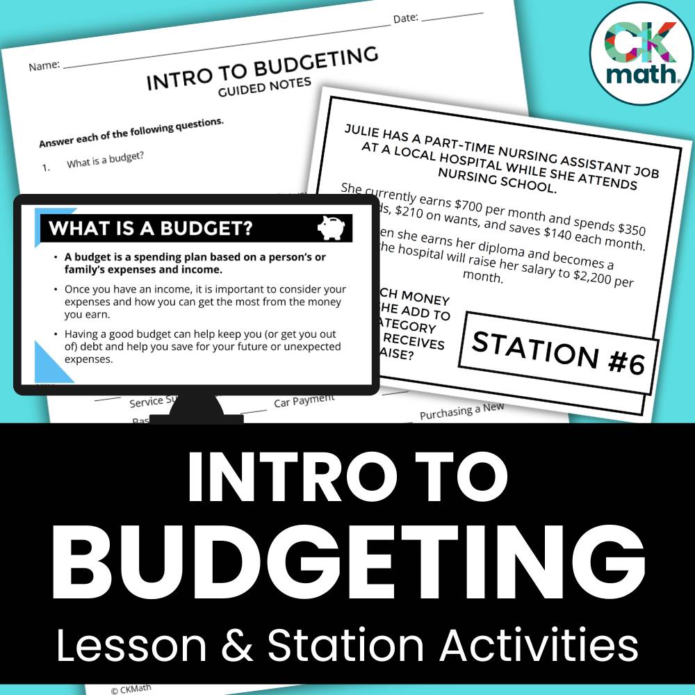 This personal finance budgeting lesson includes Google Slides, a guided notes worksheet, and 10 station activities with a recording worksheet. Students will be introduced to the basic concepts of budgeting and will learn to use a 50/30/20 budget strategy. Answer Keys included!
